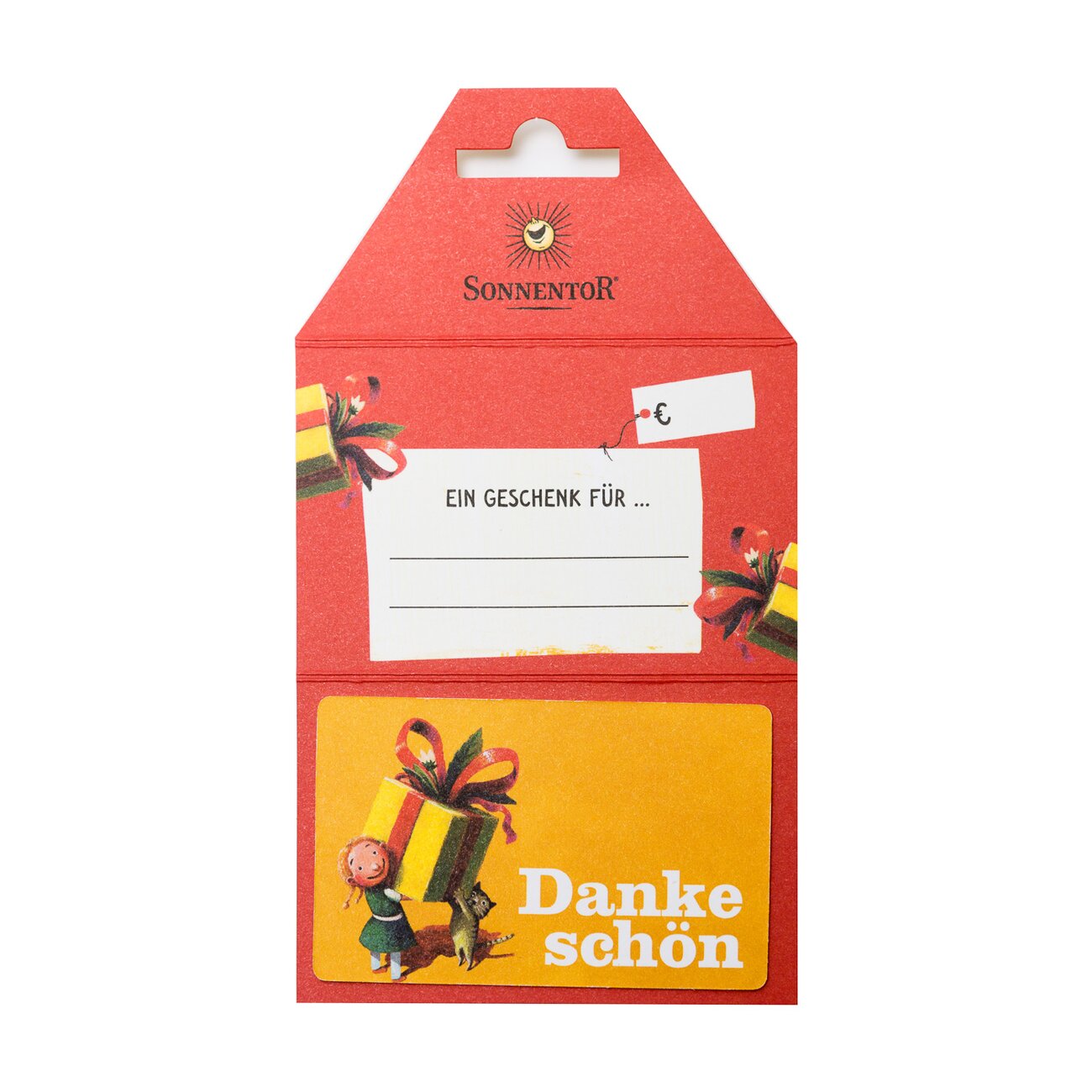 Mit dieser "Dankeschön" Gutscheinkarte eröffnet sich dem Beschenkten (fast) die gesamte SONNENTOR Welt. *) Der Betrag ist frei wählbar (5€ bis 200€).