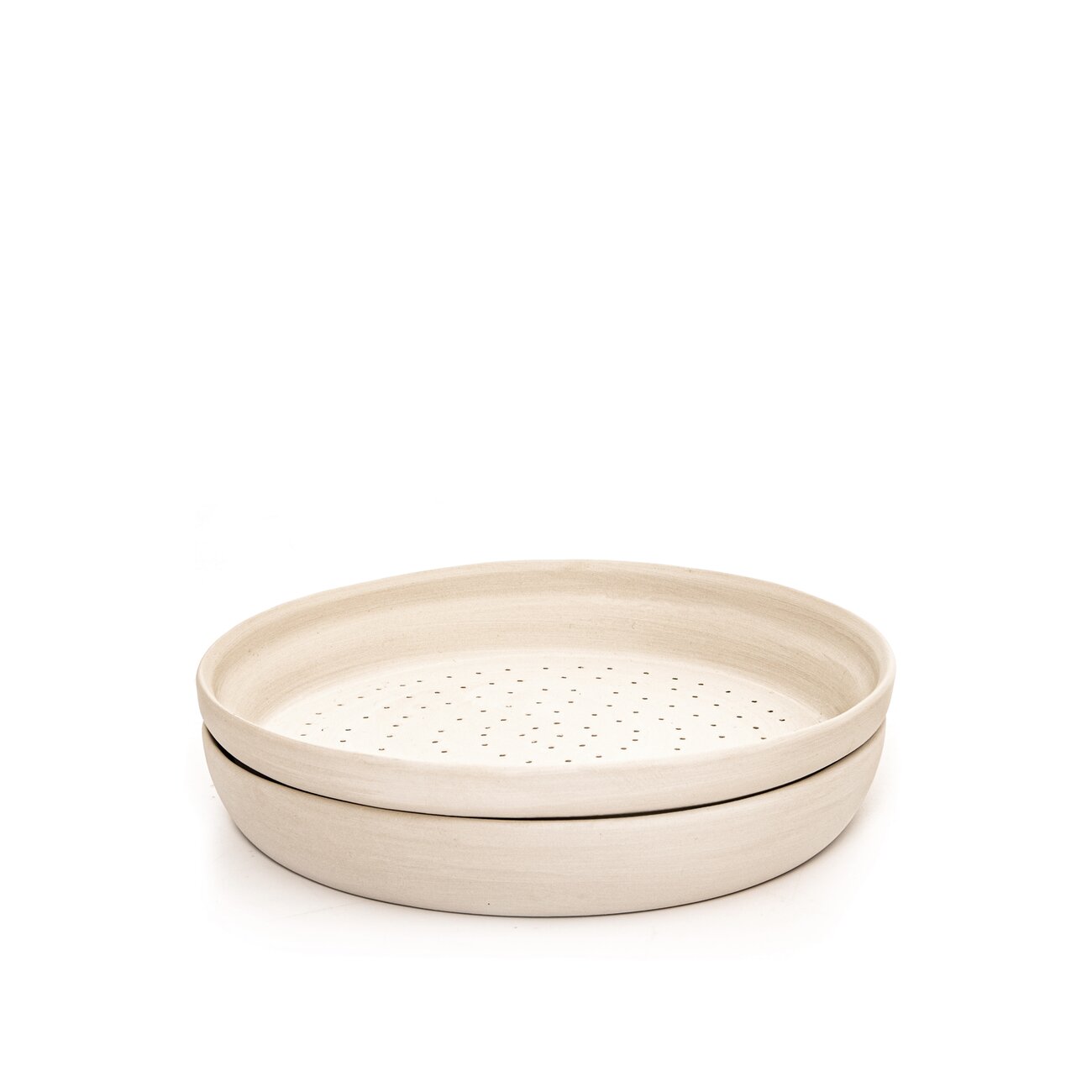 Die Keimschüsseln werden aus Keramik hergestellt und bei 1000 °C ausgebrannt. Das Keramik nimmt beim Gießen die Feuchtigkeit auf und gibt sie gleichmäßig an die Sprossen wieder ab. Dadurch können sich die Sprossen um einiges besser entwickeln.