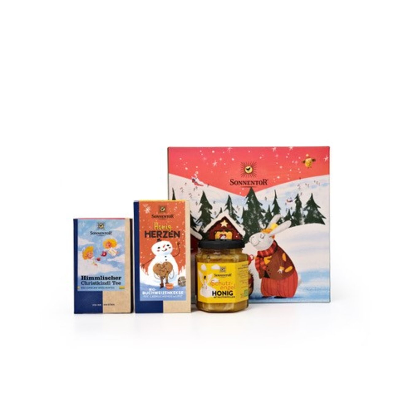 Content: Gingerbread Honey Hearts Cookies gluten-free org., package, Heavenly Christmas Delight Tea org., double chamber bag, Guardian Angel Honey org. You can find the ingredients, nutrition information and allergens of each kind at the equal product.