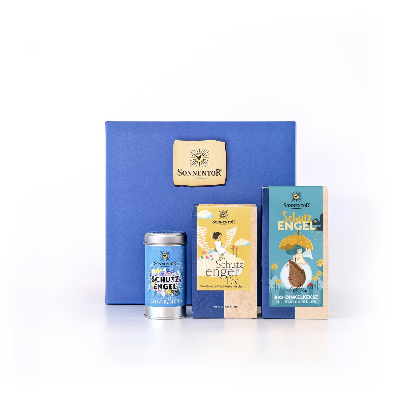 Content: Guardian Angel Cookies org., Guardian Angel Tea org. Double Chamber bag, Guardian Angel Spice Blossoms org. spice tin. You can find the ingredients, nutrition information and allergens of each kind at the equal product.