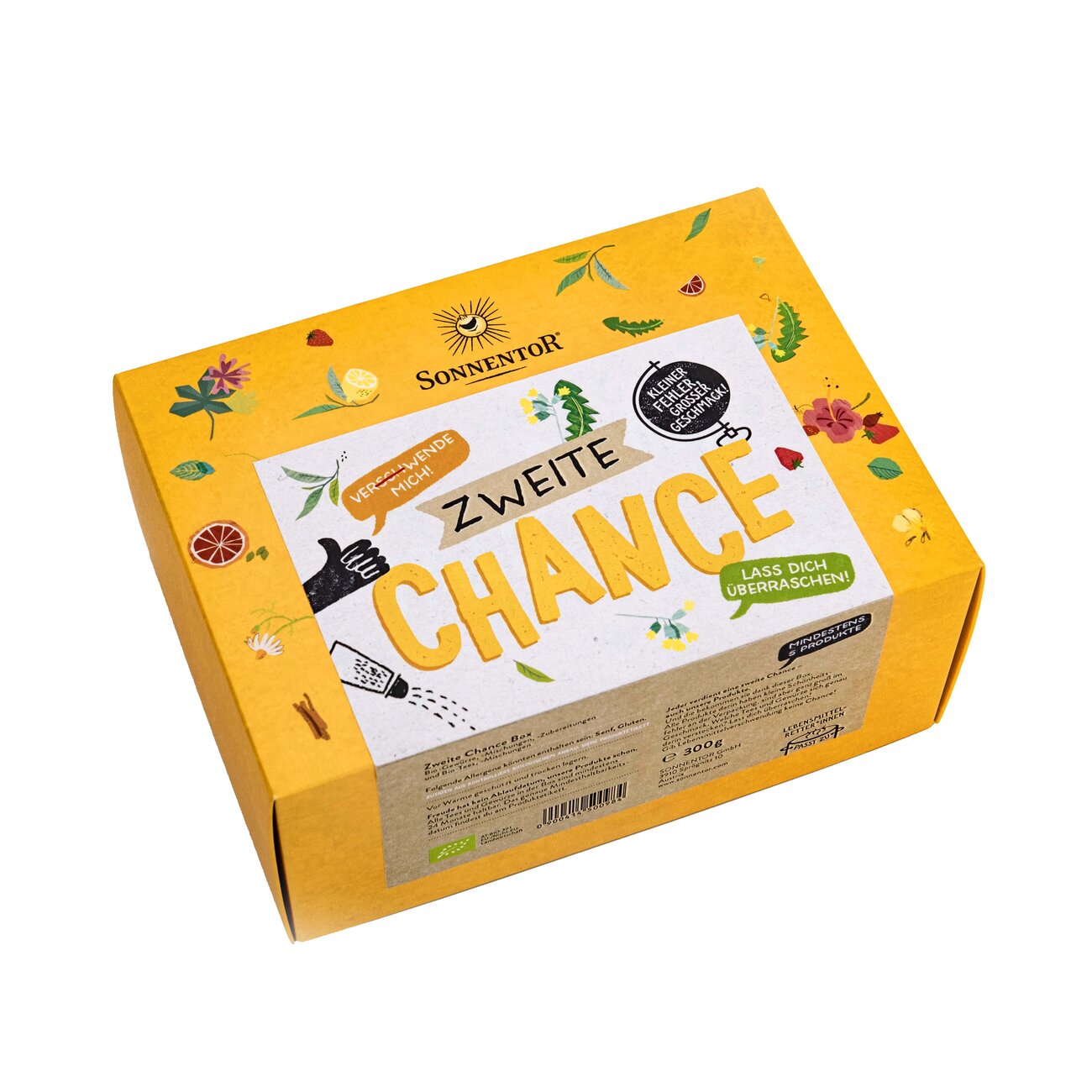 Everyone deserves a second chance – including our products. They get their second chance thanks to this box. The products have small blemishes on the packaging, but they still have their usual big flavours. What products are hidden in it? Be surprised! Don't give food waste a chance!