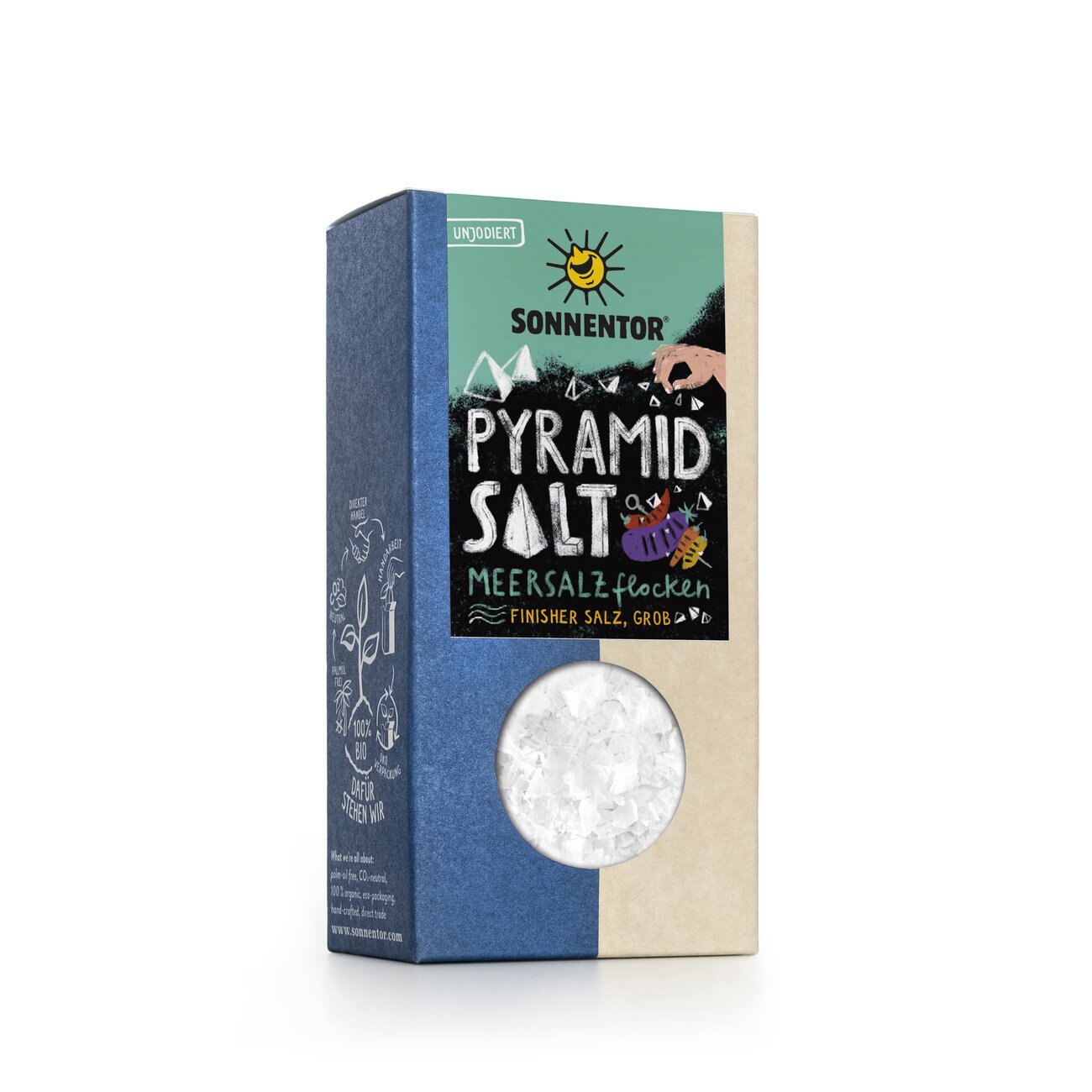 This pyramid-shaped sea salt gives your grilled food an edge. The salt's unique shape is created by slowly heating the salt brine. This gradually forms crispy crystals. The pyramid salt crystals melt quickly and are best sprinkled loosely as a finishing salt on the cooked steak, vegetable skewer, or any other goodies on your BBQ.