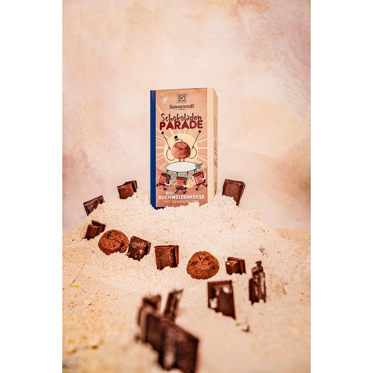 Drum roll, please! Our Chocolate Parade cookies feel at home in every snack drawer. The cookies with buckwheat flour and lots of dark chocolate are completely palm oil-free. To give away or enjoy them yourself. Chocolate all the way!