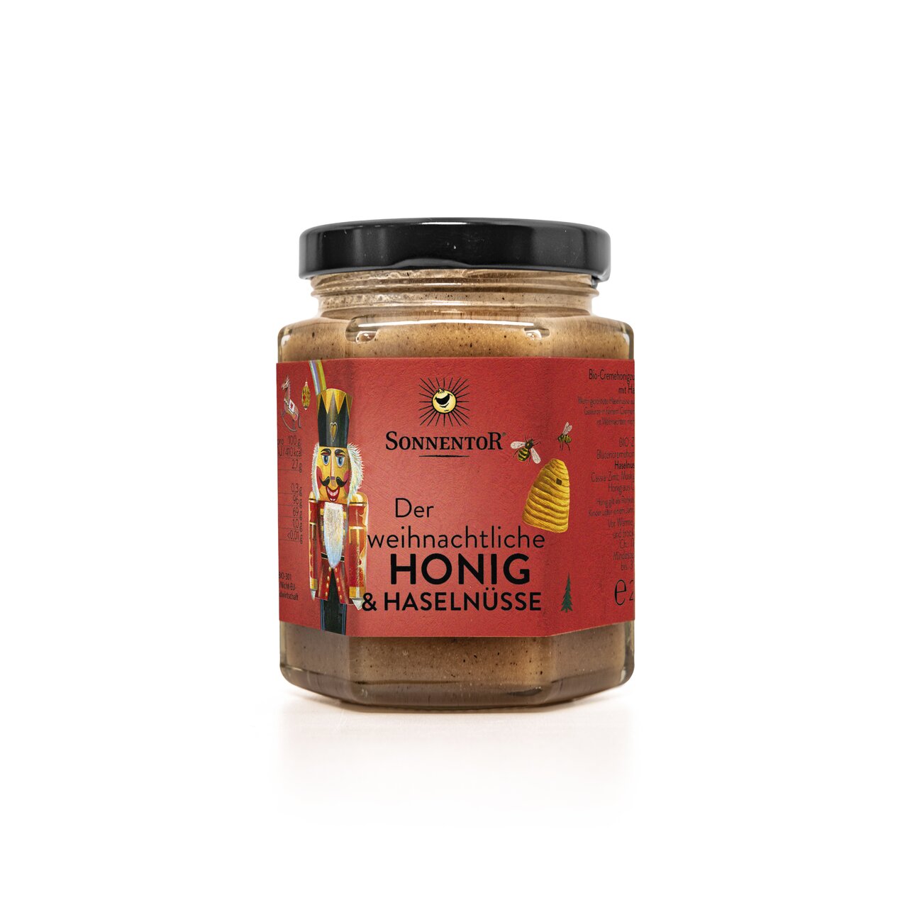 Christmas - Honey and hazelnuts. When roasted hazelnuts meet wintery spices in creamy honey, Christmas must be near! The Christmas honey with hazelnuts melts on the tongue and makes the palate rejoice.