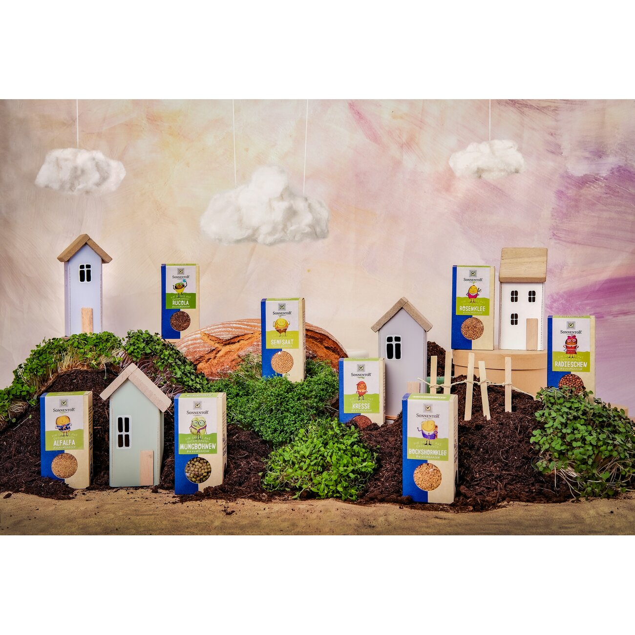 You will want to sing the praises of rose clover, it’s such a heavenly sprout. After a few hours of soaking, they grow in the sprouting jar for up to 8 days. Their slightly mild, nutty taste is suitable for salads, on bread with spreads, or to decorate your dishes. Small but mighty!