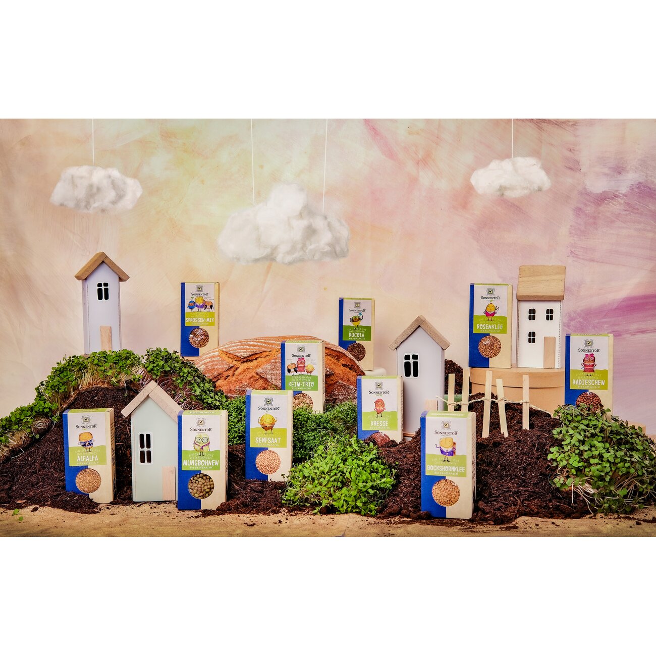 A scion with noble roots rarely comes alone. This sprouting trio of lentils, radishes, and mustard seeds will soon fill the sprouting jar. Soaking time is 4-6 hours, after which you should rinse the sprouts about twice a day. After 5 to 6 days, you will reap the fruits of your labour. Attention: Some seeds do not germinate.