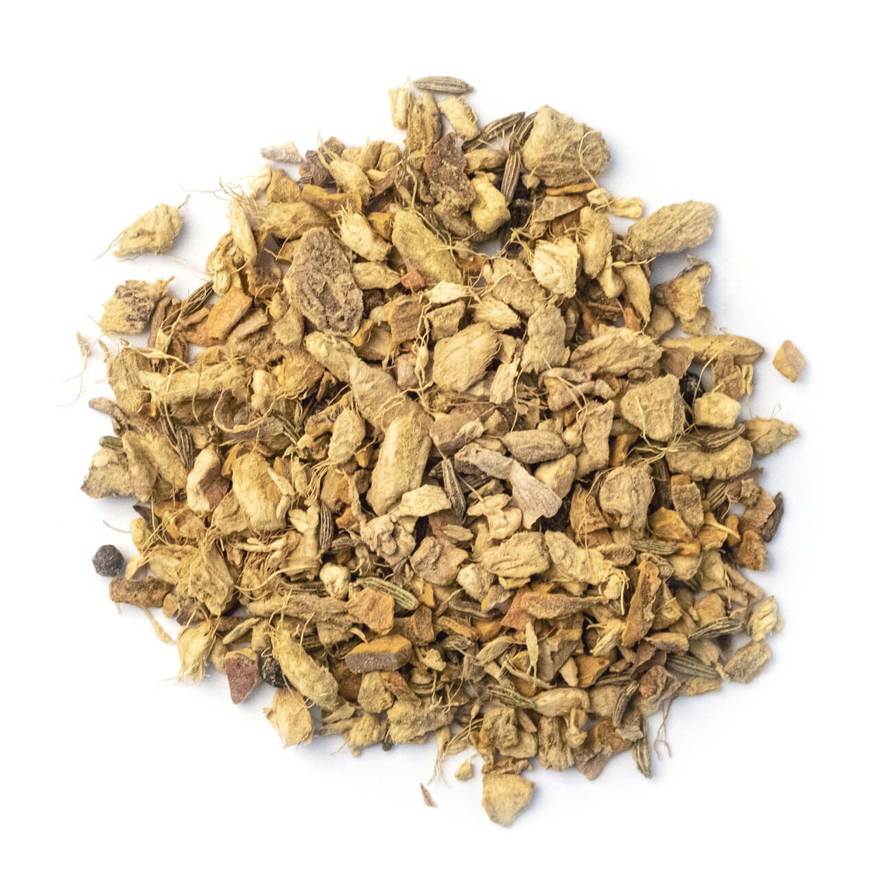 When ginger and turmeric team up it means hot times ahead! This spirited tea blend heats you up with two warming all-rounders – twice the warming power. Galangal is joining in the fun. This tuber is also part of the ginger family. Good taste is well known in this family. It goes well with exotic soups and curries.