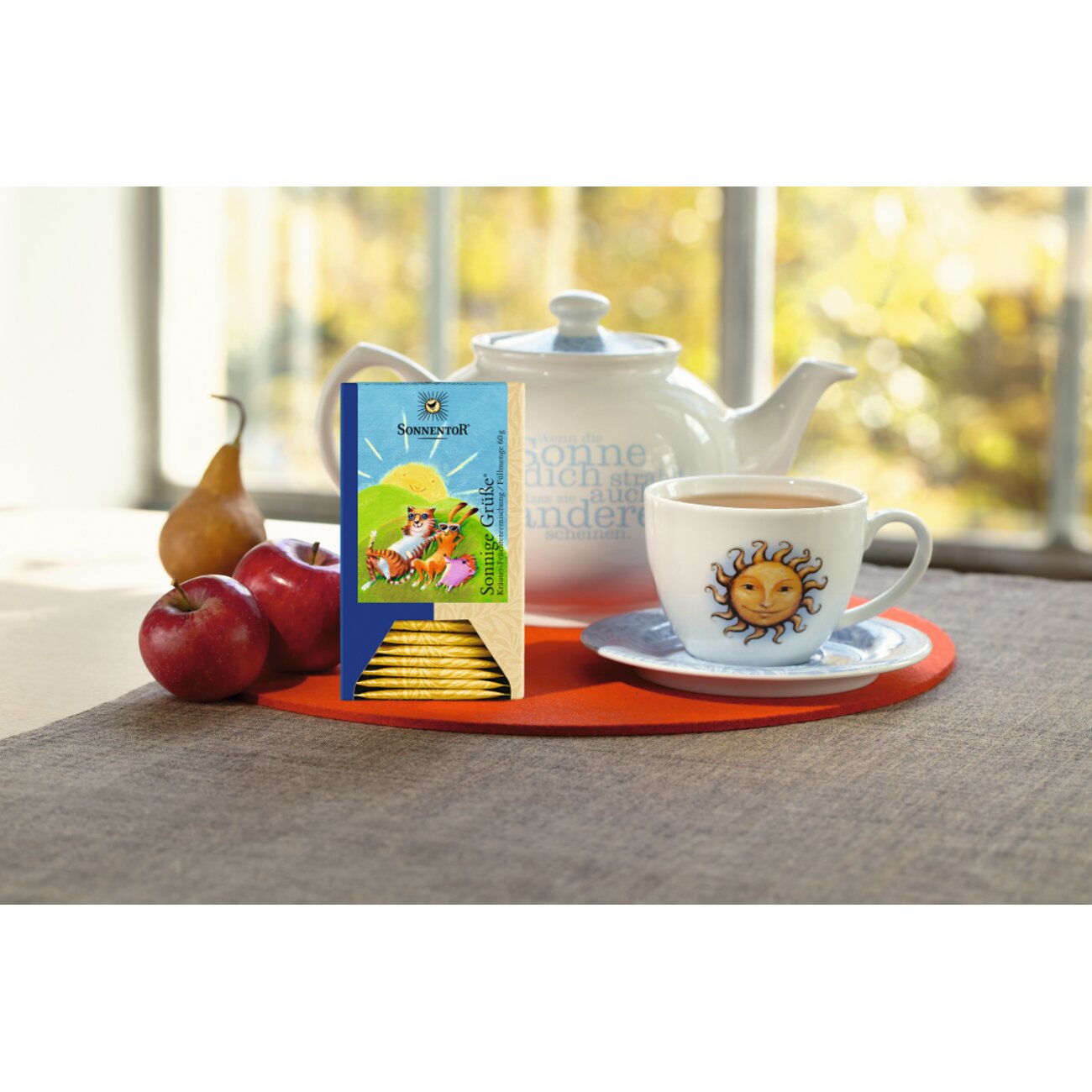 Let the sunshine in! This tea blend captures a summer orchard brimming with fruit. The amber-coloured fruit and herbal tea tastes lively and fresh with a slight acidity. It is the ideal thirst quencher and a great accompaniment to desserts, fruit cakes, and salads, especially in summer. Sunshine in a cup!