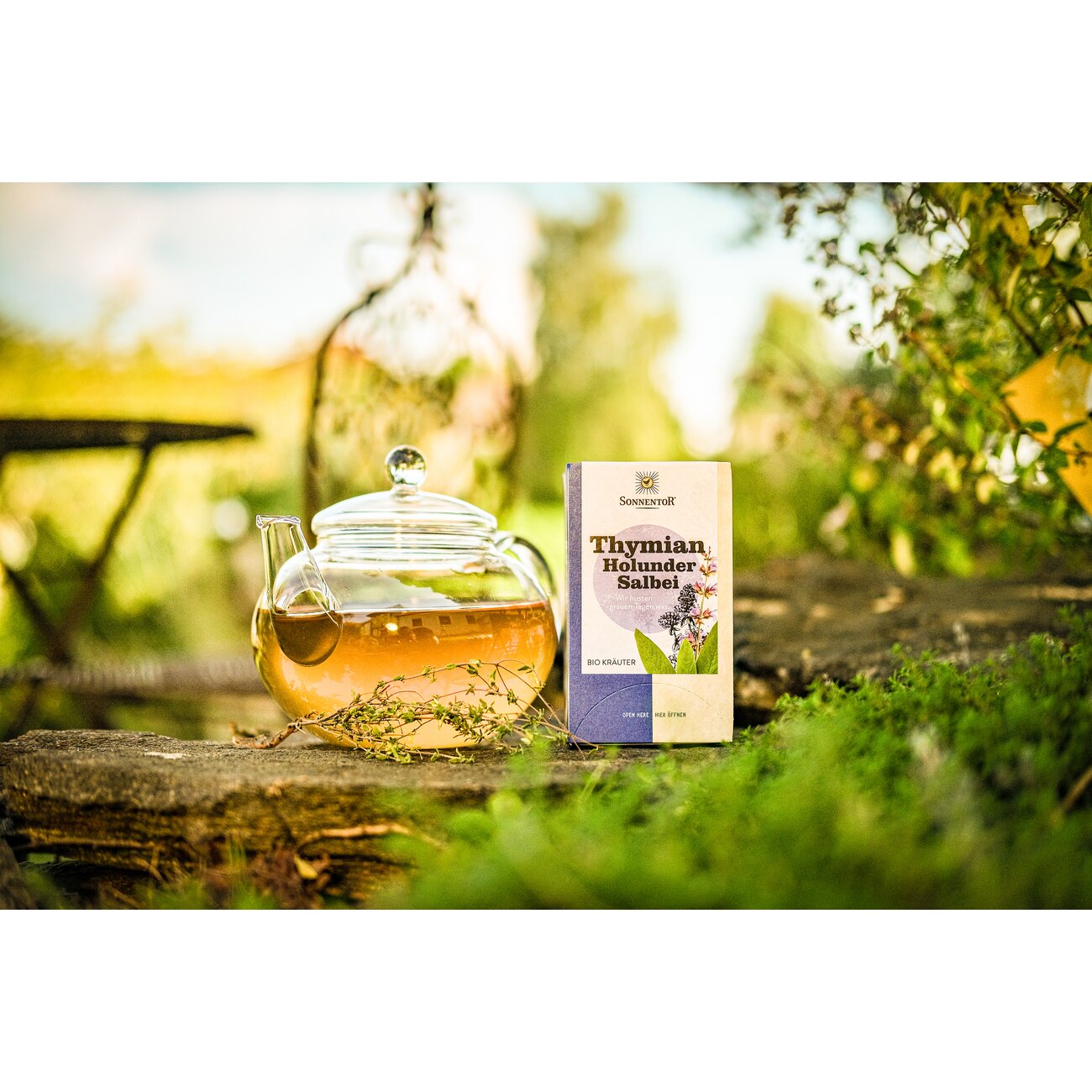 Thyme with its herbaceous, sweet flavour provides cosy warmth when you're feeling chilly. The floral, sweet elderflowers add the finishing touch to the blend.